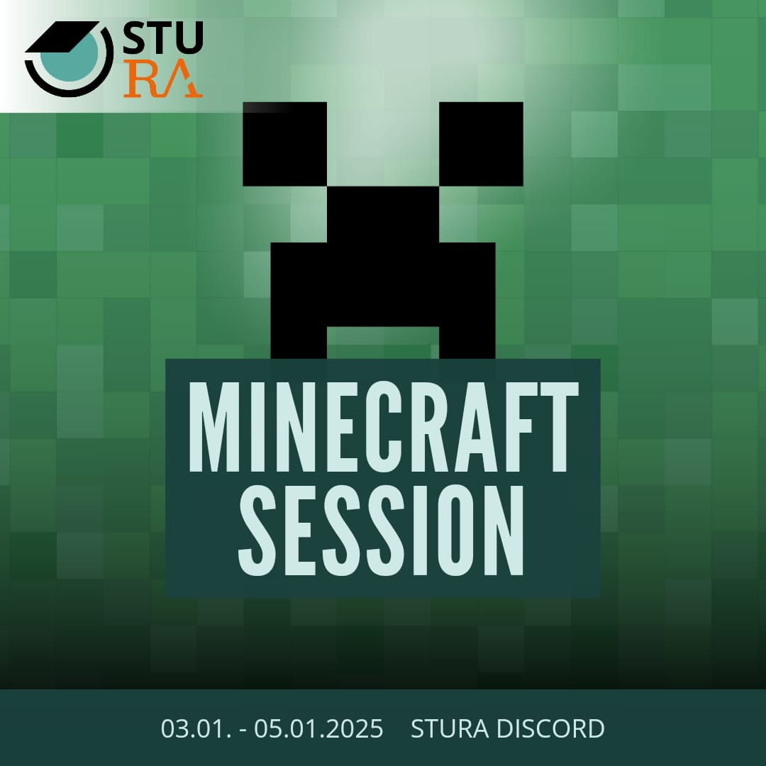 Sie sind hier: Startseite / Studentinnenrat / Referate / Referat Öffentlichkeitsarbeit / Bereich Publikationen / Newsletter / 2025 / Newsletter Januar 2025 / Minecraft Vanilla Session Newsletter 2025-01